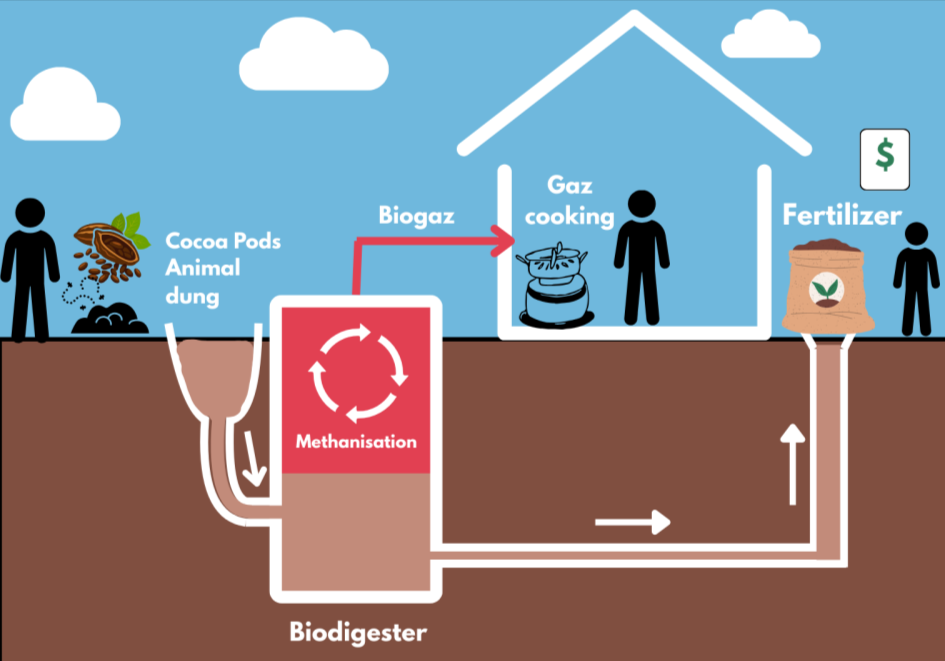 This circular system helps farmers access fertilizers, restore soil fertility, and generate new income streams for rural communities and local enterprises. Beyond the technology, the initiative aims to build a scalable economic model where cooperatives, farmers, and local SMEs benefit from the valorization of agricultural waste. The project will begin with a pilot biodigester in the Haut-Sassandra region, one of Côte d’Ivoire’s main cocoa-producing areas. Once validated, the model could scale to around 100 biodigesters, benefiting thousands of cocoa farmers while improving soil health and reducing pressure on forests.